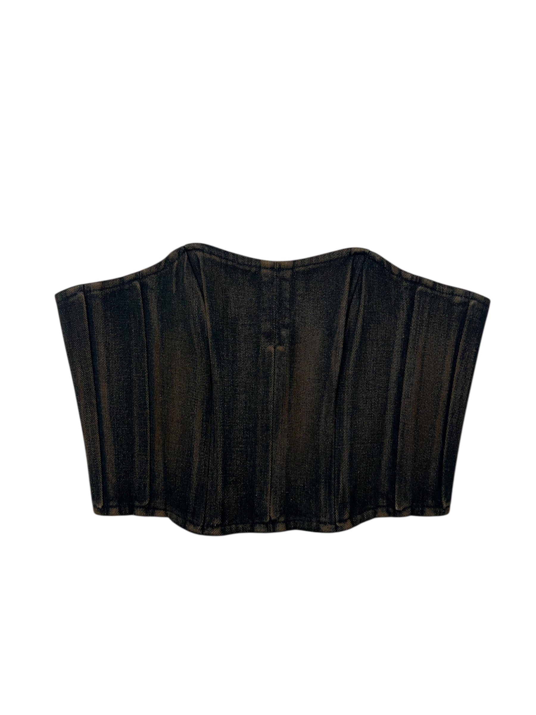 - Construcción: Corset de talle corto, diseño strapless, ajuste en espalda de